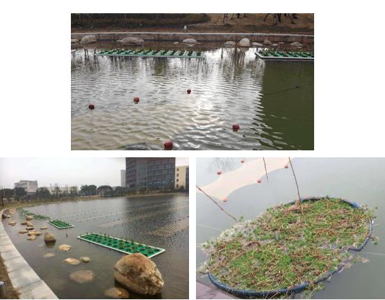 由于湖中生物缺失,種植了總面積為500平方米的植物,選擇了冬季耐寒的水生植物——菖蒲(長方形,共456平方米)、金魚藻(圓形浮島,共44平方米),來加強氨氮和總磷的降解,從而恢復整個湖體的生態(tài)系統(tǒng)。LGe新型光催化網_水庫治理_河道治理_水生態(tài)修復_水環(huán)境治理與修復_江蘇雙良環(huán)境科技有限公司