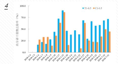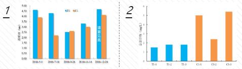 T1池沉水植被高度和覆蓋度顯著高于C1池,分別為5倍和3倍。eaS新型光催化網(wǎng)_水庫治理_河道治理_水生態(tài)修復(fù)_水環(huán)境治理與修復(fù)_江蘇雙良環(huán)境科技有限公司