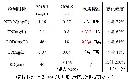 經2018年5月至2020年5月兩年的治理及維護,水生態(tài)系統(tǒng)健康穩(wěn)定發(fā)展。示范區(qū)內水質提升至III類水并維持穩(wěn)定達1年以上,“新型光催化技術”利用科技與自然共力,短期內改善水質指標,中長期生態(tài)恢復自愈自潔,真正實現清水穩(wěn)態(tài)。洱源西湖項目無論是水質還是水生態(tài)都達到并超過設定的目標和考核指標。Elg新型光催化網_水庫治理_河道治理_水生態(tài)修復_水環(huán)境治理與修復_江蘇雙良環(huán)境科技有限公司