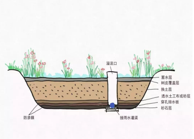 下沉式綠地主要適用于建筑、道路及停車場的周邊綠地,以及城市綠化帶等綠地內(nèi),用于匯集地表徑流,凈化初期雨水。iS6新型光催化網(wǎng)_水庫治理_河道治理_水生態(tài)修復(fù)_水環(huán)境治理與修復(fù)_江蘇雙良環(huán)境科技有限公司