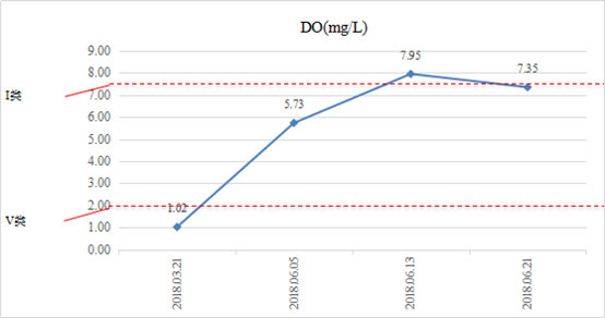 總結(jié)分析:該項目采用光催化技術(shù),在較短的時間內(nèi)快速消除黑臭、迅速提高水體含氧量、激活水生態(tài)。在6月夏季進(jìn)入雨季,各種點、面源污染物傾入湖泊,導(dǎo)致水質(zhì)有些許波動。在雨季過后6月底各項指標(biāo)都已恢復(fù)到正常水平。治理后水體透明度提高,水體變清,周圍居民對于水質(zhì)的改觀十分滿意。ZrF新型光催化網(wǎng)_水庫治理_河道治理_水生態(tài)修復(fù)_水環(huán)境治理與修復(fù)_江蘇雙良環(huán)境科技有限公司