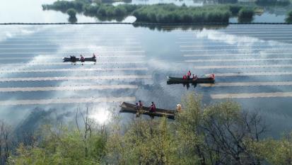 ▲治理區(qū)水草自然生長、水鳥棲息、野鴨成群Dxk新型光催化網(wǎng)_水庫治理_河道治理_水生態(tài)修復(fù)_水環(huán)境治理與修復(fù)_江蘇雙良環(huán)境科技有限公司