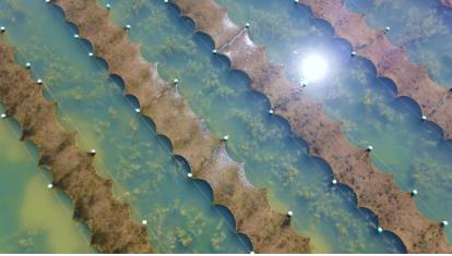 ▲治理區(qū)水體透明度高Dxk新型光催化網(wǎng)_水庫治理_河道治理_水生態(tài)修復(fù)_水環(huán)境治理與修復(fù)_江蘇雙良環(huán)境科技有限公司