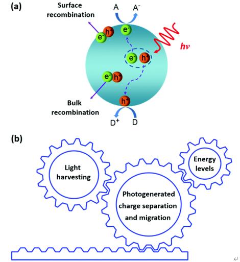 r1K新型光催化網(wǎng)_水庫(kù)治理_河道治理_水生態(tài)修復(fù)_水環(huán)境治理與修復(fù)_江蘇雙良環(huán)境科技有限公司圖2 (a) 聚合物半導(dǎo)體光催化的主要過程(D:電子給體;A:電子受體);(b)影響其光催化性能的關(guān)鍵因素。