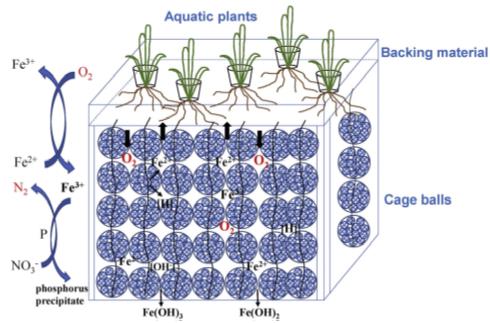 Egk新型光催化網(wǎng)_水庫治理_河道治理_水生態(tài)修復(fù)_水環(huán)境治理與修復(fù)_江蘇雙良環(huán)境科技有限公司圖2:富鐵基質(zhì)的生態(tài)浮床系統(tǒng)的機(jī)理分析