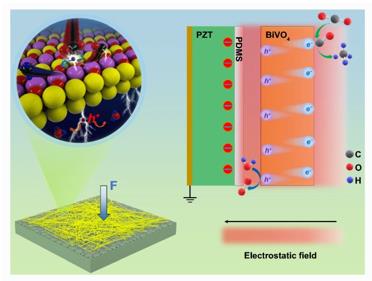 [2]. NANO-MICRO LETTERS光催化系統(tǒng)中光載流子的復(fù)合損耗直接決定了光催化劑的能量轉(zhuǎn)換效率。在這項工作中,靜電場通過分離空間中的光空穴和光電子來抑制光催化劑中光載流子的復(fù)合。作為模型結(jié)構(gòu),在壓電換能器(PZT)的PDMS絕緣壓電基片上生長了暴露(010)晶面的BiVO