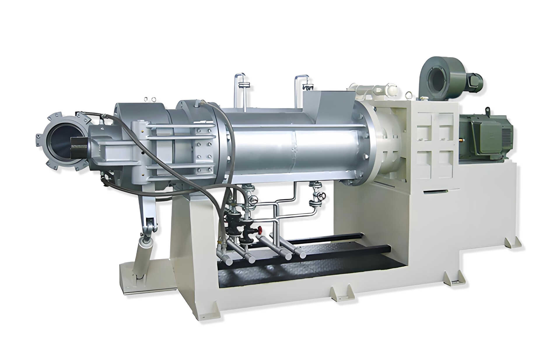 經(jīng)過過濾塑化的塑料原料進(jìn)入軋機(jī),進(jìn)行鐵屑、石材等過濾,保證軋機(jī)輥?zhàn)拥陌踩?。通過螺桿擠出,塑料可以均勻塑化。雙頭更換作快速簡便。停電時模頭自動開啟裝置,保證了機(jī)器的安全。