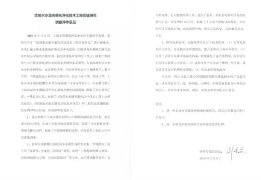 專家組通過實地踏勘,聽取匯報,審閱資料及現(xiàn)場質詢討論后,一致認為:該技術處于國際領先水平,是一種綠色、可持續(xù)、環(huán)境友好的新型水環(huán)境治理技術,在飲用水水源地、湖泊、河道具有良好的應用前景。N3K新型光催化網(wǎng)_水庫治理_河道治理_水生態(tài)修復_水環(huán)境治理與修復_江蘇雙良環(huán)境科技有限公司