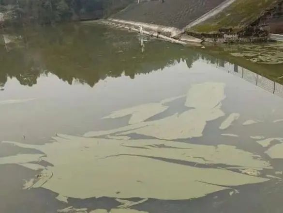 治理前水庫取水點局部水面出現(xiàn)大量藻類,水體發(fā)綠,透明度僅為40cm,感官較差。8Cl新型光催化網(wǎng)_水庫治理_河道治理_水生態(tài)修復_水環(huán)境治理與修復_江蘇雙良環(huán)境科技有限公司
